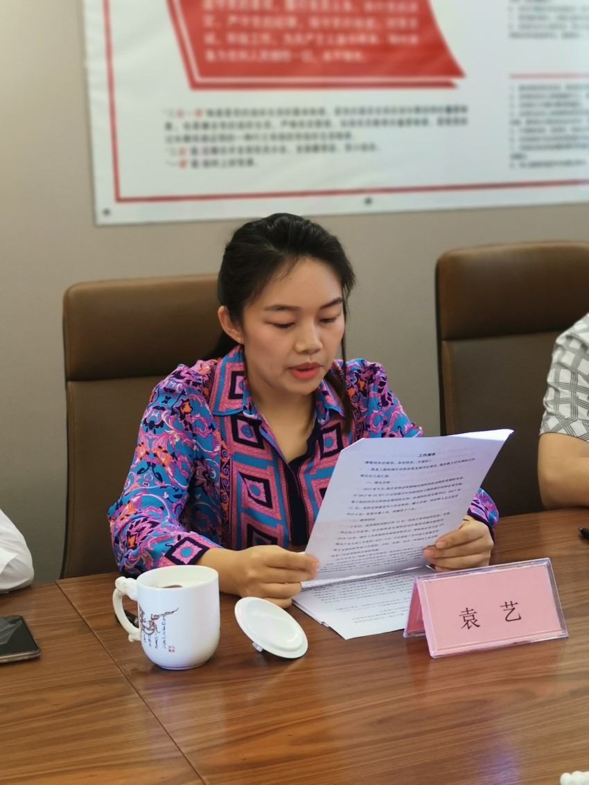 主持人介绍完会议主题,并宣布会议正式开始,全体起立,奏唱《中华人民共和国国歌》。会上,本届支部书记袁艺同志首先针对本届党建工作活动开展情况、党支部成立至今党费收缴情况和支部经费收支明细作出详细报告。随后,曹映霞同志作为代表宣读了市建筑建材行业联合党委关于党支部新一届委员会候选人的批复。协会秘书长韩松涛同志介绍候选人袁艺同志的个人情况,他表示,袁艺同志在工作上积极热情、兢兢业业,多次负责策划组织各类大型企业培训活动和公司年会,工作能力赢得领导和员工的一致认可;在政治思想方面,2017年10月深圳市工程担保行业协会党支部成立,袁艺同志经推选成为党支部书记。任职期间,带领支部党员坚持每周学习打卡、每月开展党日活动、每季度召开党员会议,落实“三会一课”、积极推进发展党员工作。生活中的袁艺同志热情、乐观,富有感染力,与同事相处融洽。